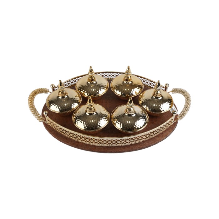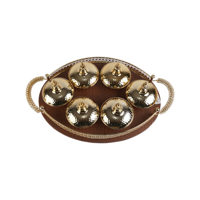 طقم فوالة ذهبي 6حبات مع صحن بيضاوي