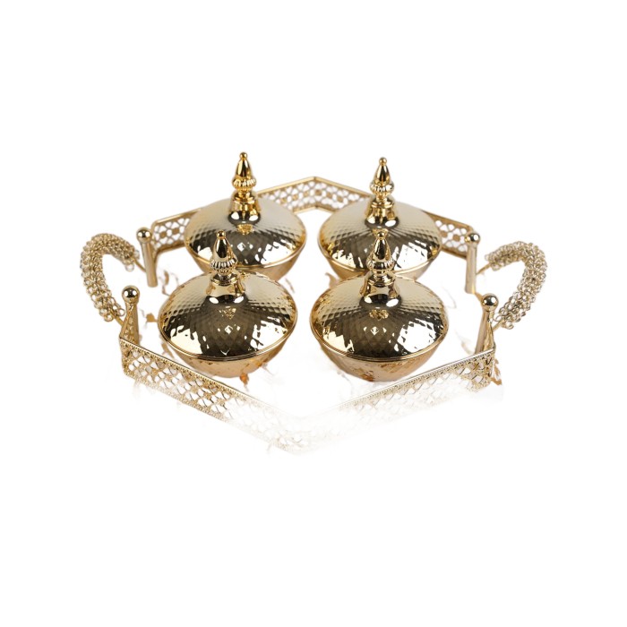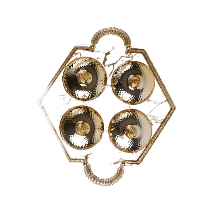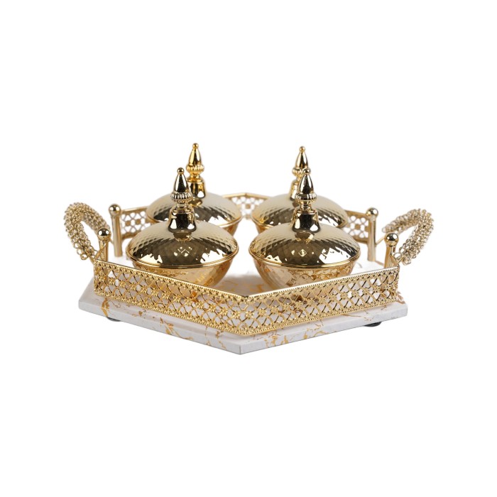 طقم تمريات ذهبي 4 حبات مع صحن رخامي